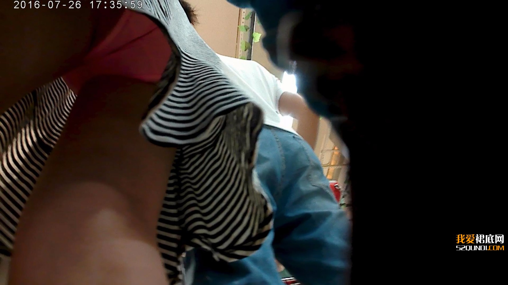 掀裙蓝丝花内裤抄底